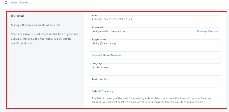 以上がKajabi(カジャビ)初期設定においての「Site Details」(サイトディーテイル)設定方法となります。