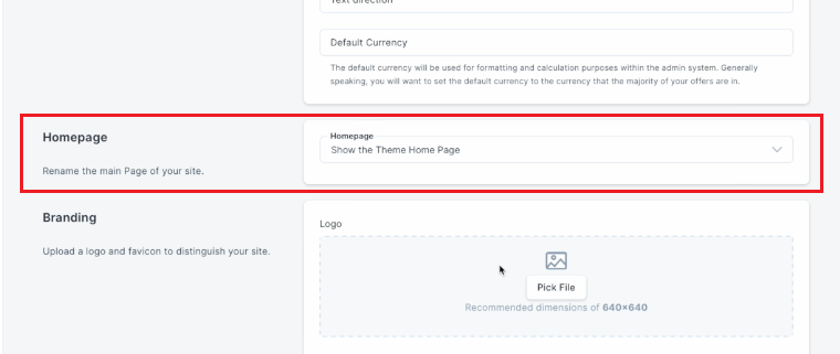 「Branding」にある「Logo」ではサイトのロゴを設定できます。